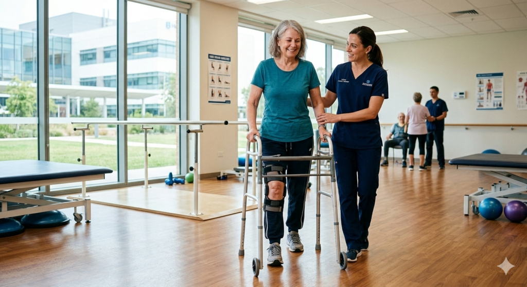 Most patients can walk with support within 1–2 days after surgery. Full recovery usually takes 6 to 12 weeks. Physical therapy plays a key role in regaining strength and mobility. Returning to light activities is possible in 4–6 weeks, while strenuous activities should be avoided for at least 3 months.