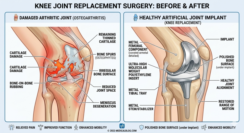 Many patients ask: “Can I just continue with medicines and physiotherapy?” The honest answer depends on how advanced your joint condition is.